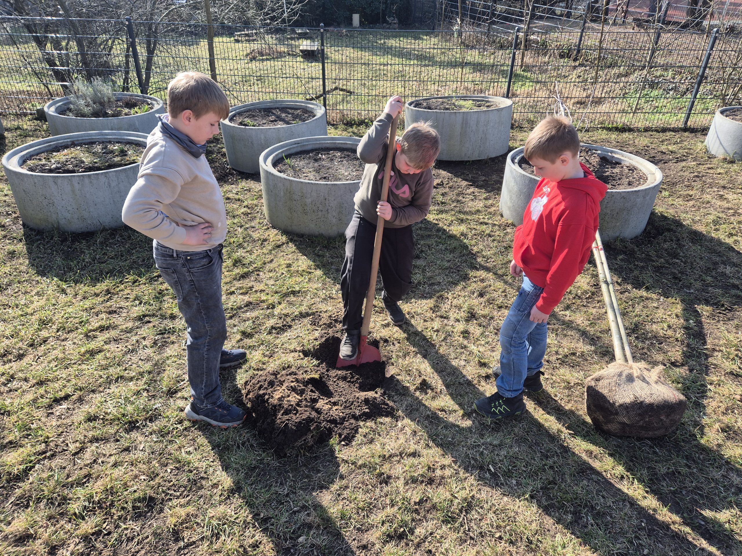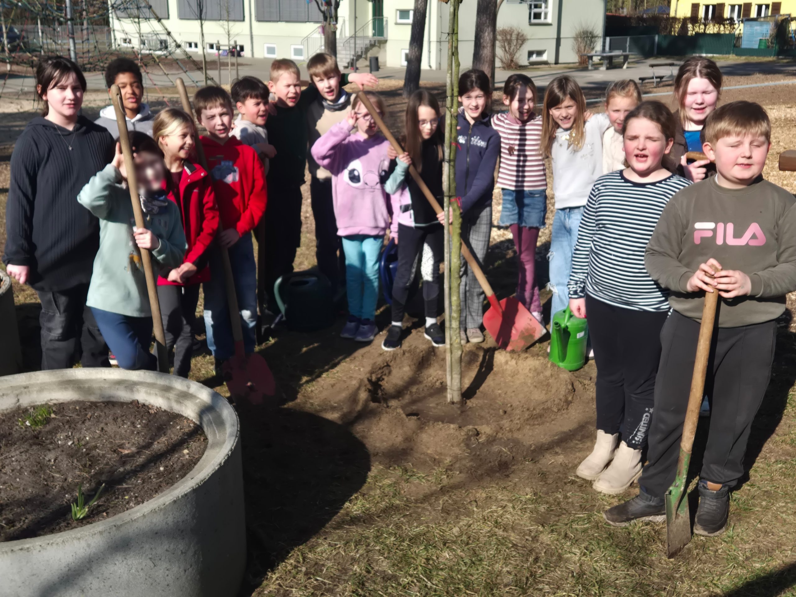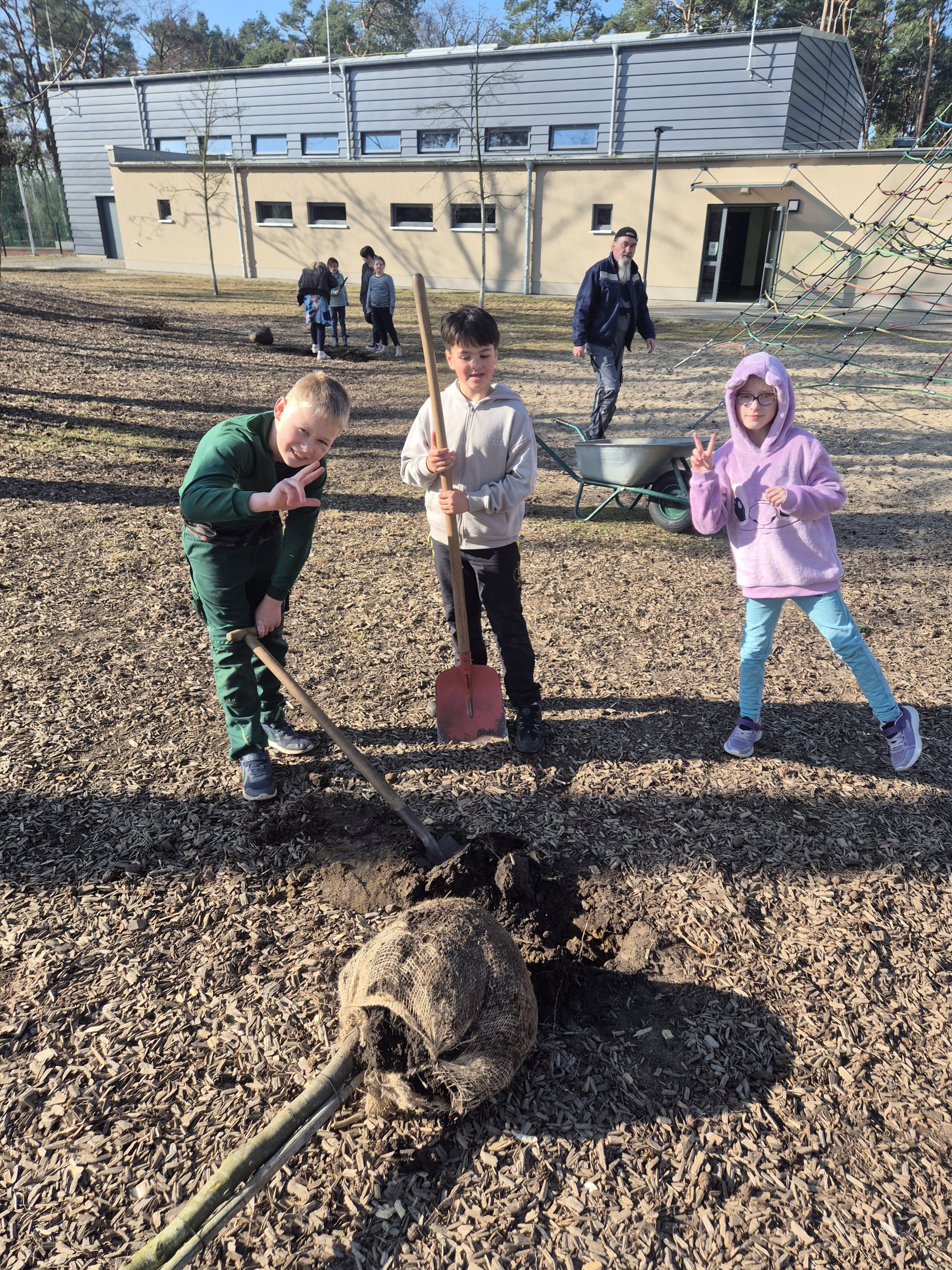Im Zuge des letzten großen Sturms haben wir acht alte Bäume auf unserem Schulhof verloren. Dank der großzügigen Spende von Herrn Golombek in Form von fünf neuen Bäumen konnten Klasse 3 und 4 nun unserem Schulhof wieder ein paar schöne kleine Schattenplätze schenken. Wir freuen uns sehr und bedanken uns recht herzlich!