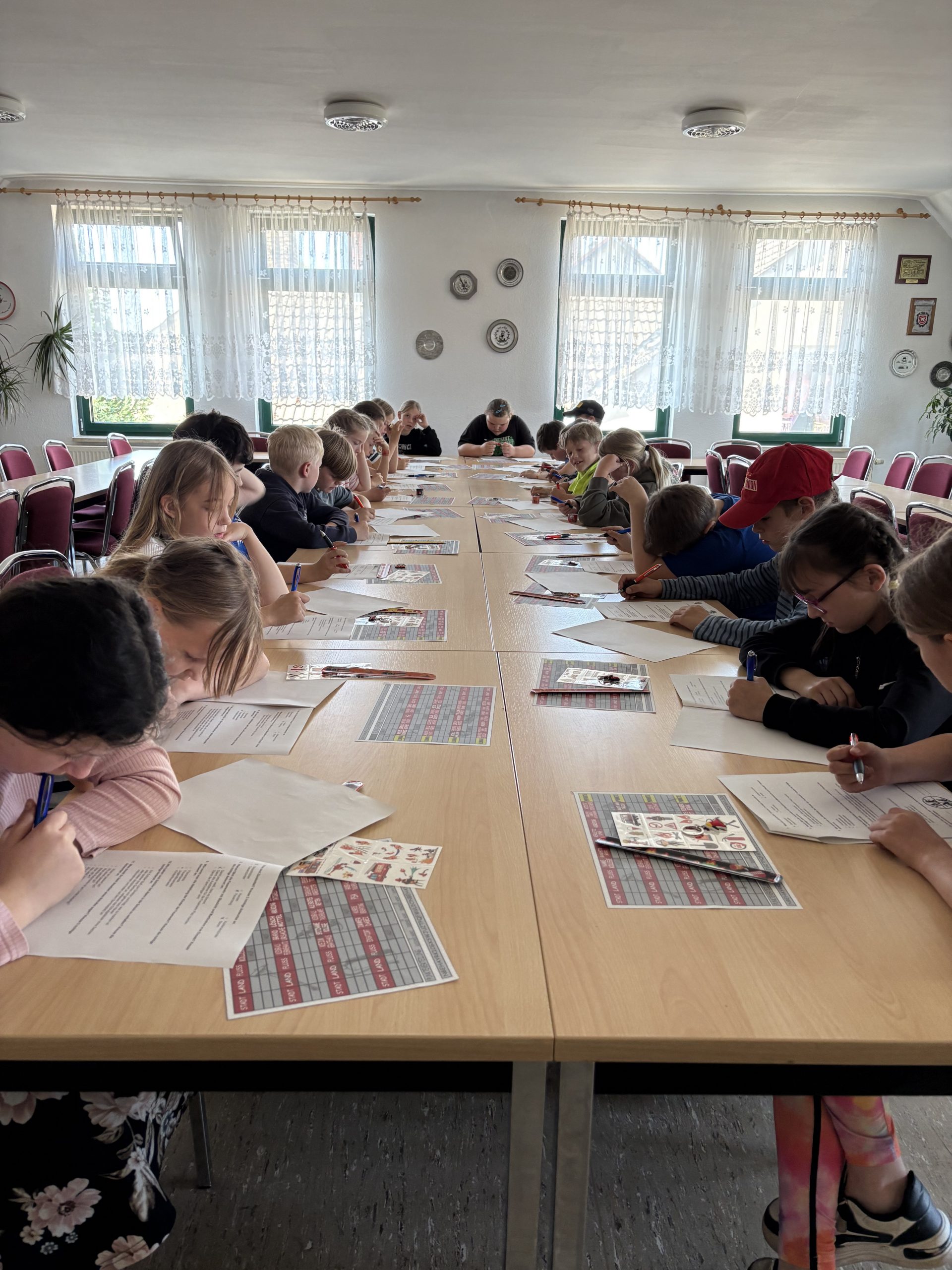 Die Großen unternahmen bei herrlichem Wetter mit der Naturwacht eine Radtour um den Pinnowsee. Klasse 3 hat sich bei der Feuerwehr umgeschaut und ihr Wissen bei einem Quiz unter Beweis gestellt. Die Kleinen stiegen in die Heidekrautbahn und besuchten das Barnim Panorama. Pfarrerin Frau Kruse lud ausgebildete Organisten ein, die unseren Kindern tolle Einblicke in den Aufbau und die Funktion der Orgel gewährten. Der ein oder die andere durfte sich auch selbst beim Orgelspielen ausprobieren. Sportlich wurde es mit dem Deutschen Skiverband. Mit selbst gewählten Teamnamen wie z.B. „Die krasse Truppe“, „Pferdeherde“ oder „Chicken Banana“ waren beim Hindernisparcours an verschiedenen Stationen Geschicklichkeit, Balance, Präzision und auch Schnelligkeit gefragt.