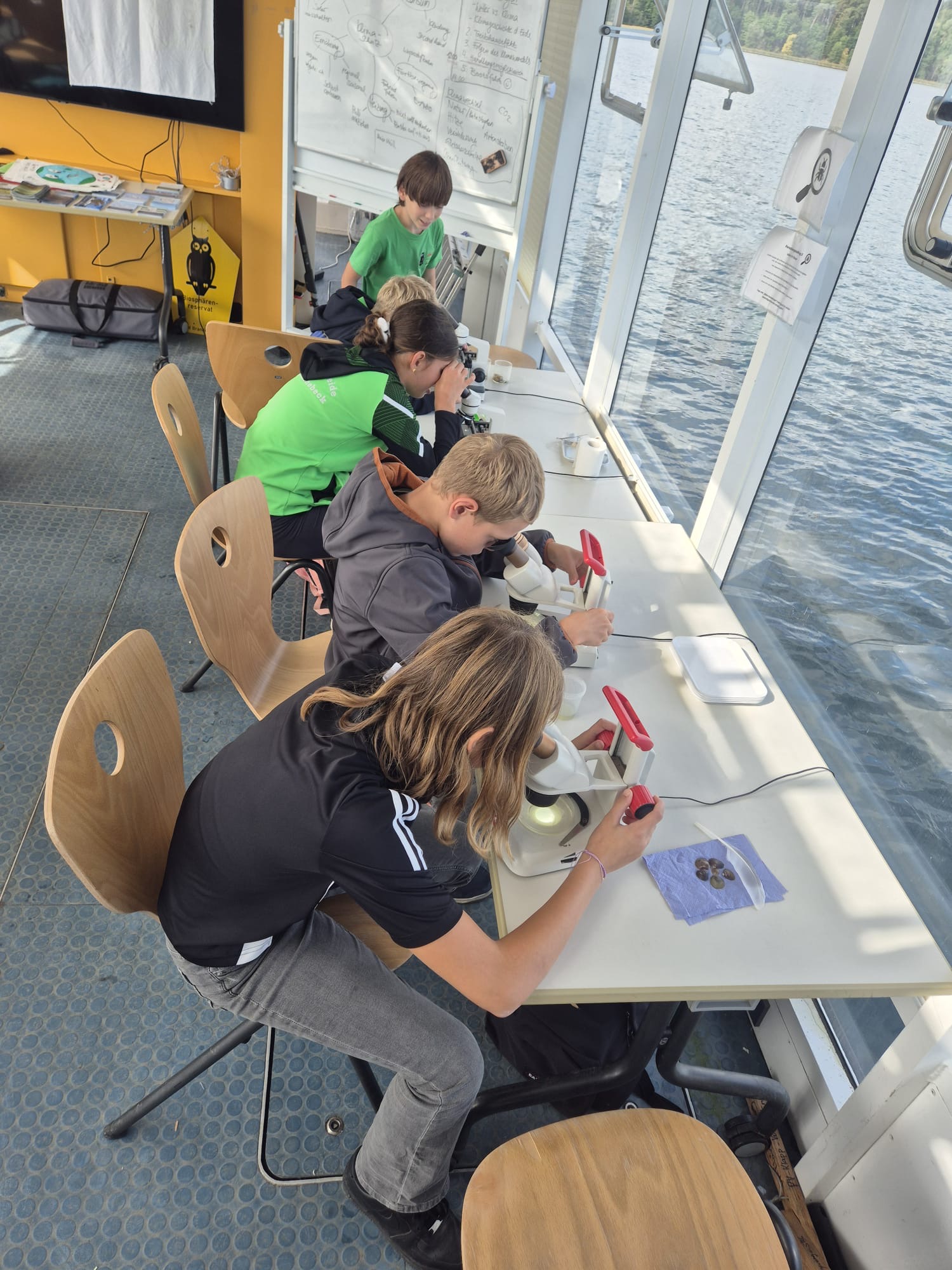 Gemeinsam mit der Naturwacht durften Klasse 5 und 6 auf spannende Entdeckungsreise auf den Werbellinsee gehen. Mit Käscher und Lupe untersuchten sie zunächst die Kleinstlebewesen im seichten Wasser, bevor es dann mit dem solarbetriebenen Katamaran „auf hohe See“ ging, wo u.a. mittels Lot die Wassertiefe geschätzt und gemessen wurde. Wir danken Anne und der Naturwacht für dieses tolle Erlebnis!